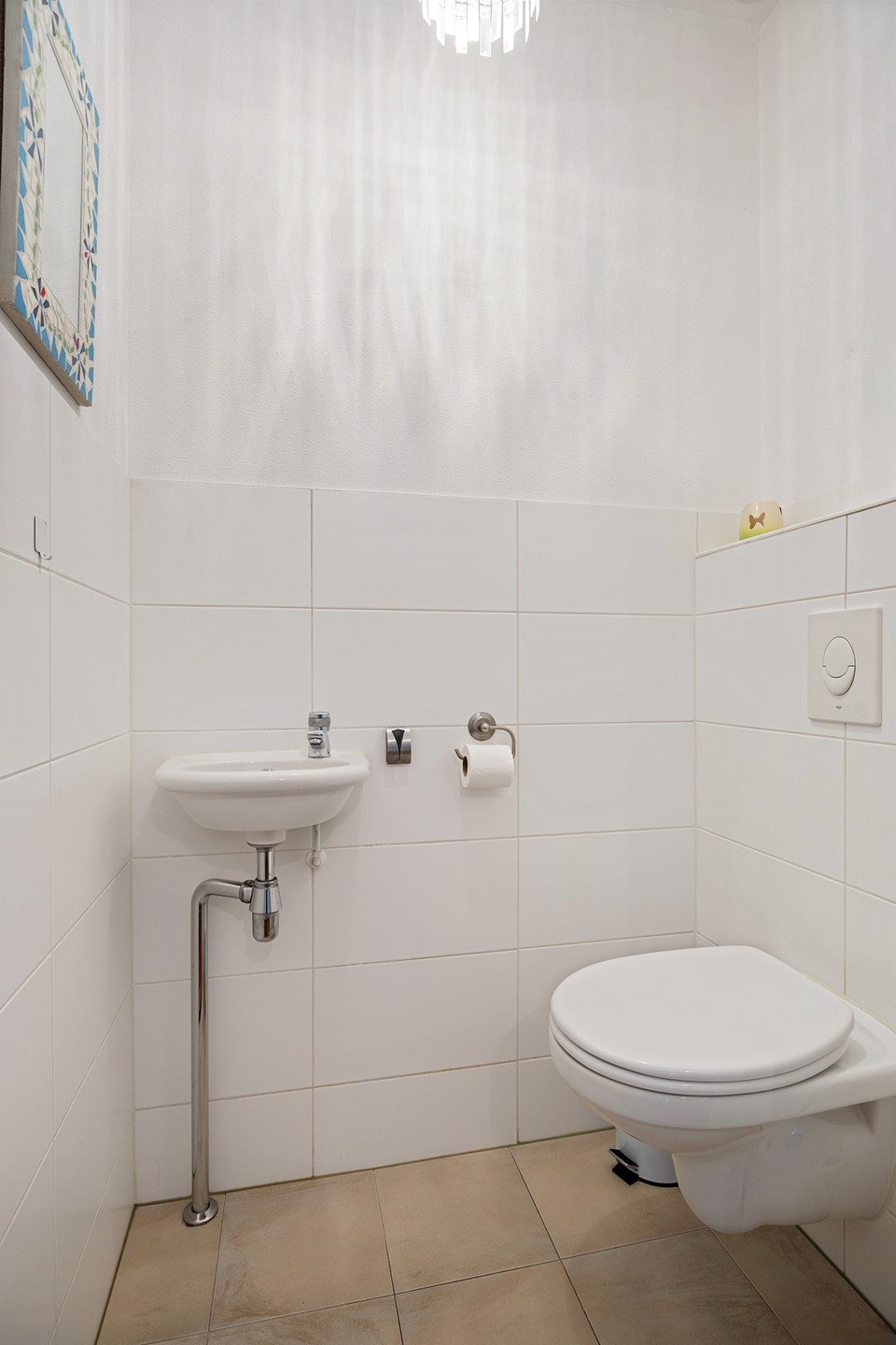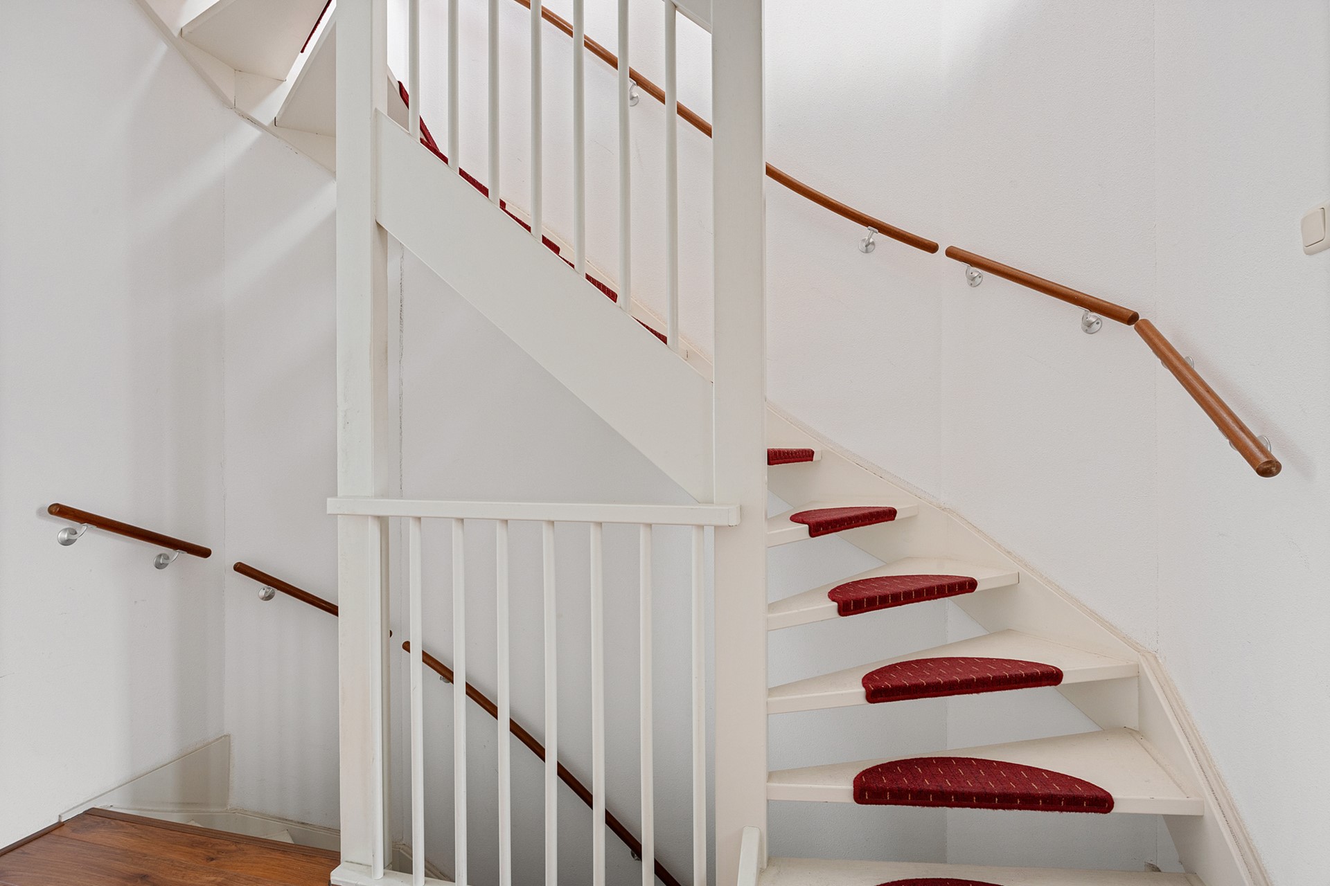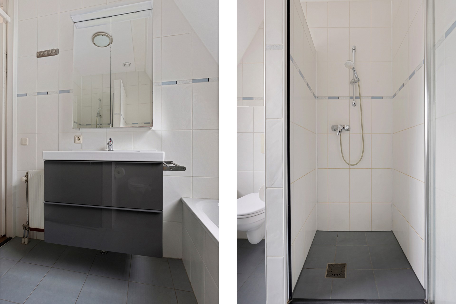 On the first floor, there are three bedrooms and the bathroom. In addition, you will find a stylish, modern bathroom with a bath, walk-in shower, toilet, and washbasin in neutral colours. The entire floor has neat laminate flooring.