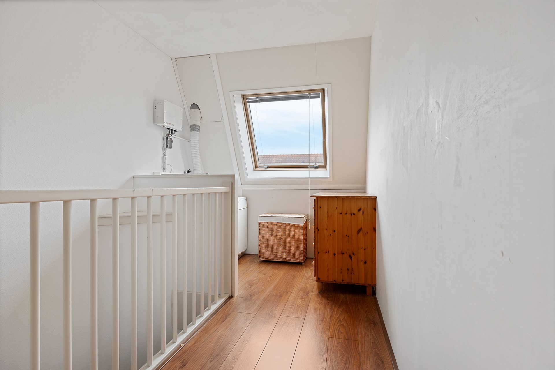 The second floor consists of a landing and a spacious fourth bedroom. The washing machine connection and technical installations are located on the landing. This floor also has laminate flooring. The spacious attic with standing room is accessible from the landing via a loft ladder.