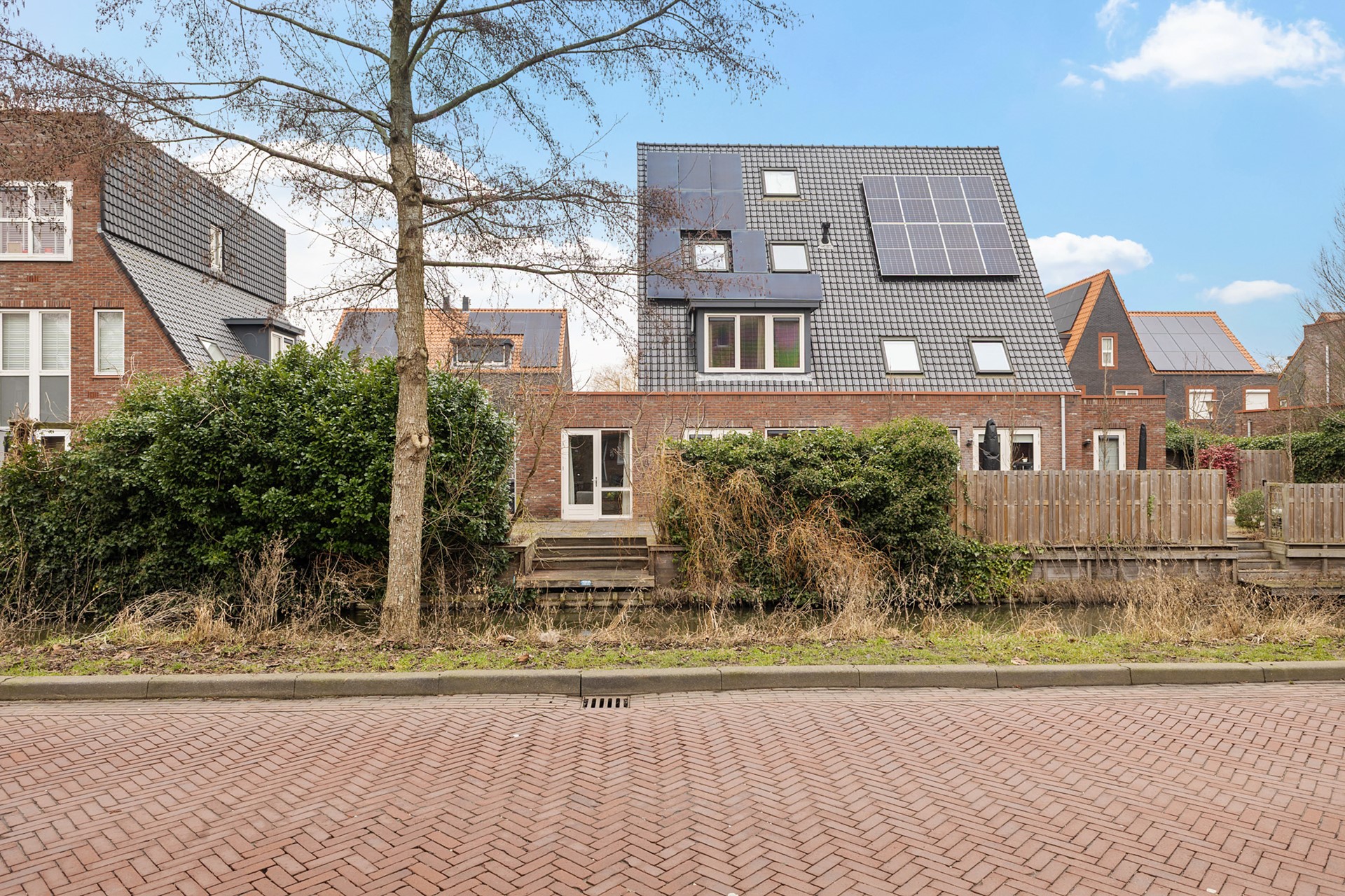 -De achtertuin grenzend aan sierwater is tevens bereikbaar via de zijkant van de woning