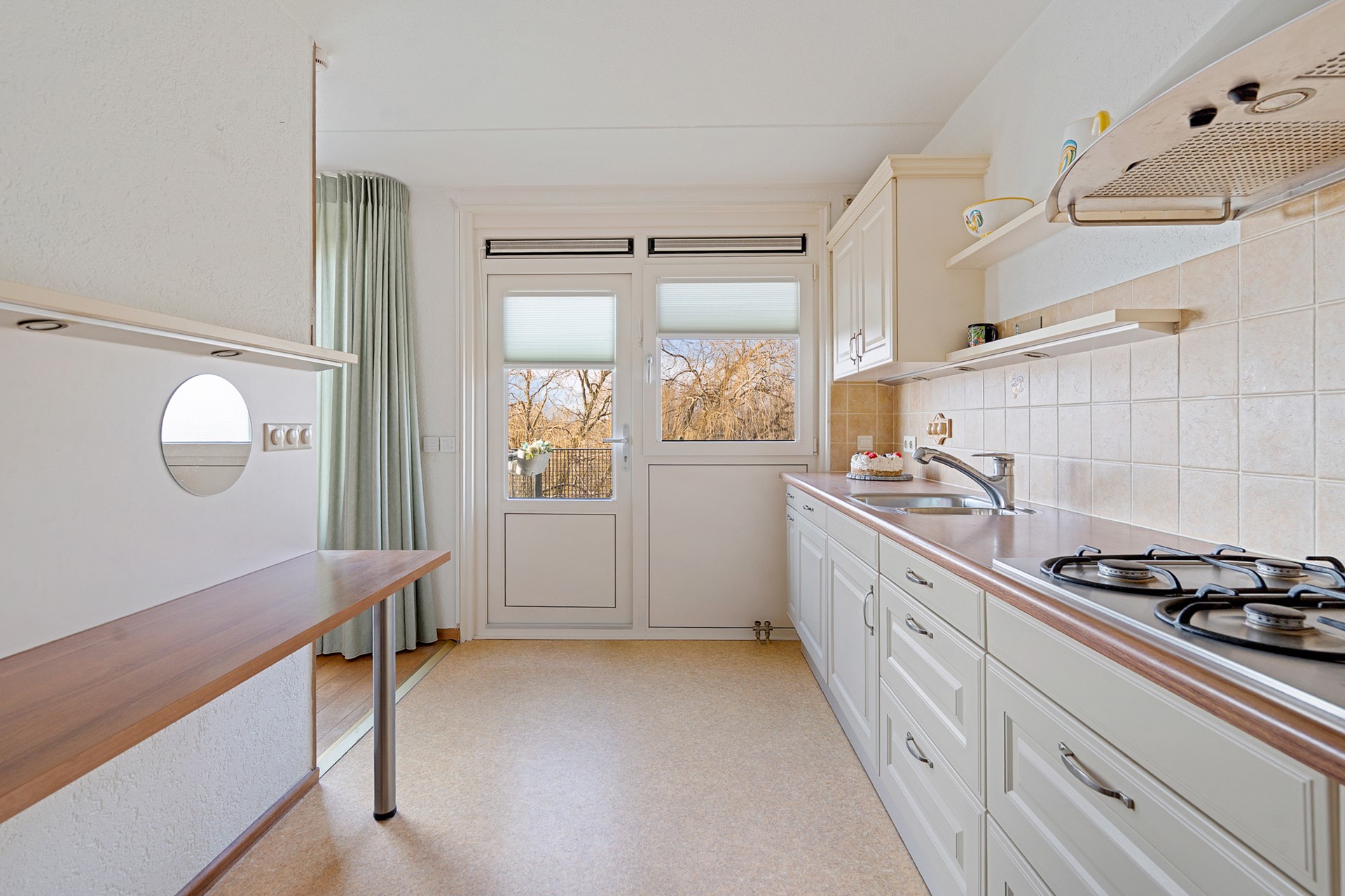 Charmant 3-kamer appartement op de bovenste verdieping van dit complex, met prachtig uitzicht gedurende de hele dag vanaf het balkon in Amstelveen Westwijk