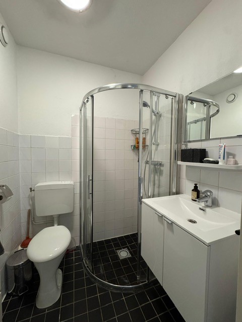 The modern open kitchen is equipped with all the necessary appliances and is ideal for the hobby chef. The bedroom is spacious and offers plenty of closet space. The neat bathroom is equipped with a shower, toilet and sink (cabinet).